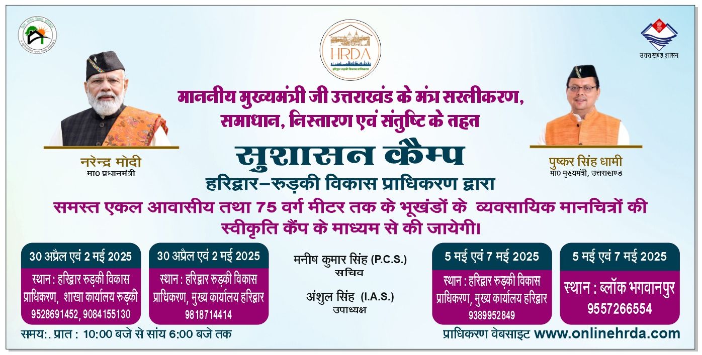 अमित कुमार हरिद्वार । मुख्यमंत्री पुष्कर सिंह के सुशासन हेतु सरलीकरण समाधान, निस्तारण तथा संतुष्टि के मन्त्र के अन्तर्गत हरिद्वार-रूड़की…