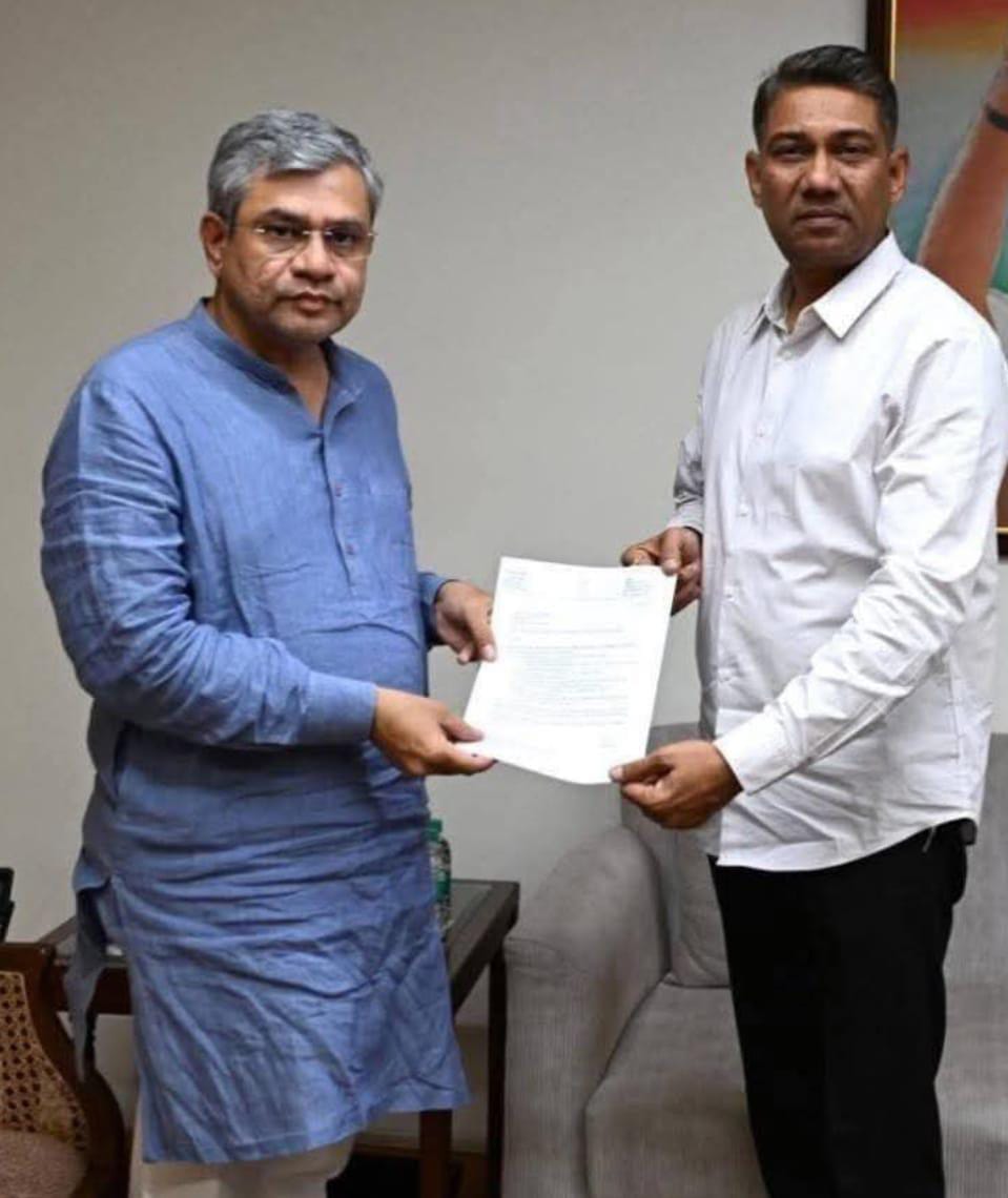 आर. के. जोशी नोहर। रेल मंत्री अश्विनी वैष्णव से पूर्व केंद्रीय मंत्री निहालचंद ने दिल्ली में की मुलाकात। उन्होंने रेल…