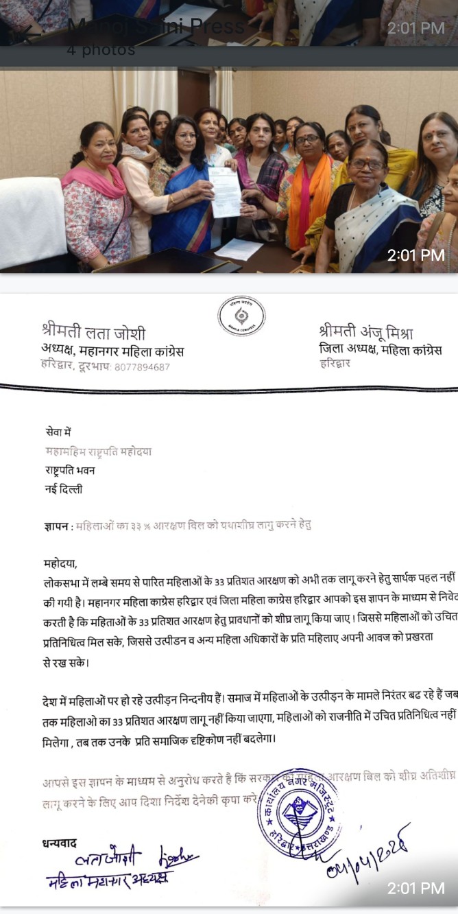 अमित कुमार। हरिद्वार। देश में महिलाओ को 33 प्रतिशत आरक्षण लागू करने की मांग को लेकर महिला कांग्रेस पार्टी की…