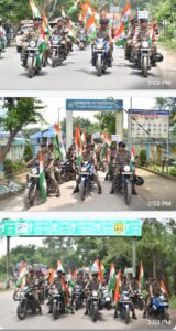 गयाजी। केन्द्र सरकार के आदेशानुसार देशभर में तिरंगा बाइक रैली का आयोजन किया गया। इसी क्रम में महानिरीक्षक, केन्द्रीय रिजर्व पुलिस बल बिहार सेक्टर के मार्गदर्शन में 47 बटालियन सीआरपीएफ, गयाजी द्वारा भी भव्य तिरंगा बाइक रैली का आयोजन किया गया।बटालियन के कमांडेंट अवधेश कुमार ने बटालियन के सभी अधिकारीगण एवं जवानों की उपस्थिति में जेल परिसर से रैली को हरी झंडी दिखाकर रवाना किया।यह तिरंगा रैली जेल कॉम्पलेक्स से निकलकर सिकरिया मोड़,आर्मी गेट एवं शहर के प्रमुख मार्गों से होते हुए देशभक्ति गीतों और नारों के साथ गुजरी। रैली का समापन 47 बटालियन मुख्यालय में हुआ।