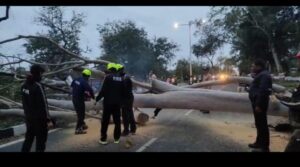 हरिद्वार। भेल के मध्य मार्ग पर फाउंड्री गेट के पास एक विशालकाय यूकेलिप्टस का पेड़ देर शाम धराशाही हो गया। गनीमत रही कि उस वक्त सड़क पर आवाजाही कम थी। इसलिए जान माल की कोई हानि नहीं हुई। विशाल पेड़ गिरते ही दोनों तरफ का ट्रैफिक अवरुद्ध हो गया । और लोग घंटों जाम मे फसे रहे। और लोगों को लंबे रास्ते का चक्कर काट कर अपने गंतव्य को जाना पड़ा ।पेड़ की गिरने की सूचना पुलिस को और भेल के संपदा विभाग को दी गई। जिससे मौके पर एनडीआरएफ एवं भेल की संपदा विभाग की टीम ने मौके पर। पहुंचकर पेड़ को काटकर रास्ता साफ किया ।लगभग 2 घंटे तक ट्रेफिक जाम रहा भेल के मध्य मार्ग पर अभी कुछ समय पूर्व ही बैरियर नंबर 2 के निकट एक पेड़ गिरने से एक बालिका की मृत्यु हो गई और दूसरी घायल हो गई थी। उसके पश्चात ही भेल प्रबंधन हरकत में आया थाऔर उसने मध्य मार्ग पर गिरासू एवं दीमक लगे पेड़ों को काटना शुरू किया था। जबकि वन विभाग की लापरवाही के चलते गिरासू सिल्वर ओक के पेड़ एक वर्ष पूर्व से कटने का इंतज़ार कर रहे थे, लेकिन अनुमति के इंतजार में भेल पेड़ नहीं काट पाया था और बालिका की पेड़ गिरने से मृत्यु हो गई लेकिन उसके पश्चात भी भेल प्रशासन नहीं जागा और सड़क के किनारे खड़े विशालकाय पेड़ जो की दीमक द्वारा खा लिए गए थे उन्हें अभी तक पूरी तरह नहीं हटाया गया । उसी का नतीजा है कि आज पुनः देर शाम 6:30 बजे साथ 70 फीट ऊंचा यूकेलिप्टस का पेड़ थोड़ी सी हवा में ही धराशाई हो गया । अब प्रश्न खड़ा होता है कि जो पेड़ गिरा है उसको काटने की अनुमति वन विभाग ने दी है या नही आखिर कौन है जिम्मेदार ? वहीं प्रत्यक्षदर्शयों के अनुसार पेड गिरते समय आवाजाही सड़क कम थी। इसलिए कोई जान माल की हानि नहीं हुई लेकिन उसी के पड़ोस में तीन-चार और पेड़ गिरासू हैं जिनको समय रहते नहीं काटा गया तो वह किसी दिन भी गिरकर हादसे को दावत दे सकते हैं