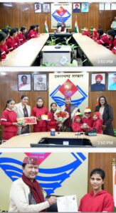 देहरादून।राष्ट्रीय बालिका दिवस के अवसर पर राजकीय बालिका निकेतन, केदारपुरम, जिला शरणालय एवं प्रवेशालय तथा शिशुसदन की लगभग 30 बालिकाओं ने उत्तराखण्ड की मुख्य सचिव श्रीमती राधा रतूड़ी से उनके कार्यालय में मुलाकात की तथा अनौपचारिक संवाद किया। सीएस श्रीमती राधा रतूड़ी ने इस अवसर पर मौजूद प्रत्येक बालिका से उनकी शिक्षा, व्यक्तिगत जीवन तथा भविष्य की योजनाओं के बारे में विस्तृत बातचीत की, बालिकाओं के सवालों के जवाब दिए तथा उनका उत्साहवर्धन किया।मुख्य सचिव श्रीमती राधा रतूड़ी के पूछने पर राजकीय बालिका निकेतन, केदारपुरम में रहने वाली 9वीं कक्षा की छात्रा पूजा ने बताया कि वह भविष्य में वकील बनना चाहती है। सीएस श्रीमती रतूड़ी ने पूजा को स्कूली शिक्षा में उत्कृष्ट प्रदर्शन के लिए प्रोत्साहित करते हुए जिला प्रोबेशन अधिकारी तथा बालिका निकेतन के अधिकारियों को पूजा के लिए कानून के क्षेत्र में करियर बनाने हेतु हेतु जरूरी मार्गदर्शन, काउन्सलिंग एवं उचित जानकारी उपलब्ध कराने के निर्देश दिए। इसी तरह बालिका निकेतन में ही रहने वाली 7वीं कक्षा की छात्रा प्रिया शर्मा ने मुख्य सचिव को बताया कि वह भविष्य में आर्मी ऑफिसर बनना चाहती है। मुख्य सचिव श्रीमती रतूड़ी ने जिला प्रोबेशन अधिकारी को प्रिया के लिए सैनिक कल्याण विभाग की मदद से फिजिकल ट्रैनिग व कोचिंग की व्यवस्था करने के निर्देश दिए। सीएस ने पूजा को फिलिकल फिटनेस के साथ ही पढ़ाई में भी कठिन परिश्रम करने की सलाह दी। मुख्य सचिव के पूछने पर खुशबू रावत ने बताया कि वह योगा में स्नातक कर रही है तथा इसी क्षेत्र में करियर बनाना चाहती है। भावना रावत ने बताया कि फैशन डिजाइनिंग में करियर बनाने के बात कही। खुशबू और भावना रावत अल्मोड़ा से हैं तथा बालिका निकेतन की सहायता से अपनी पढ़ाई पूरी करने के बाद वे अपने गांव वापस जाना चाहती हैं। इसी प्रकार राजकीय बालिका निकेतन से रौनक, रिया, साक्षी भट्ट, खुशी, रोशनी, शिफा, संगीता एवं नर्गिस, जिला शरणालय से शिवानी, विमला, नैना, रूचि तथा शिशु सदन से रमा, लक्षमी और राधा ने भी मुख्य सचिव श्रीमती राधा रतूड़ी से बातचीत की।मुख्य सचिव ने बालिका निकेतन एवं शरणालय में रहने वाली सभी बालिकाओं के लिए उचित शिक्षा, स्वास्थ्य सेवाओं एवं करियर काउन्सलिंग की व्यवस्था के निर्देश दिए हैं। मुख्य सचिव श्रीमती राधा रतूड़ी ने बालिकाओं से कहा कि उनके उज्ज्वल भविष्य, बेहतरीन करियर और आर्थिक सशक्तिकरण के लिए अच्छी शिक्षा एवं कौशल विकास पर ध्यान देना जरूरी है। बेहतर शिक्षा महिलाओं के सामाजिक सशक्तिकरण का साधन है। राज्य सरकार ने भी महिलाओं के आर्थिक एवं सामाजिक सशक्तिकरण को बढ़ावा देने के लिए विभिन्न योजनाएं लागू की हैं। मुख्य सच