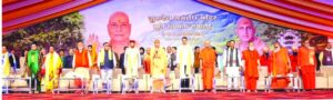 हरिद्वार। ब्रह्मलीन स्वामी सत्यमित्रानंद गिरि की समाधि स्थल पर उनकी मूर्ति स्थापना का तीन दिवसीय समारोह का आज शुभारम्भ हुआ। कार्यक्रम का विधिवत शुभारम्भ भारत माता मन्दिर से सप्तऋषि मैदान स्थित आयोजन स्थल तक निकाली गई भव्य शोभायात्रा से हुआ, जिसमें श्रद्धालुओं एवं संत समाज की विशाल उपस्थिति रही। अपने उद्बोधन में पूर्व राष्ट्रपति रामनाथ कोविन्द ने ब्रह्मलीन स्वामी सत्यमित्रानंद गिरि को राष्ट्र की अमूल्य विभूति बताते हुए कहा कि उन्होंने भारत माता मन्दिर की स्थापना कर राष्ट्र की चेतना, एकता एवं अखण्डता को सुदृढ़ करने का कार्य किया। उन्होंने समाज के वंचित, उपेक्षित एवं शोषित वर्ग तक सेवा और सहायता पहुँचाने का प्रेरणादायी कार्य किया। उन्होंने कहा कि गुरुदेव की मूर्ति स्थापना केवल श्रद्धा का प्रतीक ही नहीं, बल्कि भावी पीढ़ियों के लिए राष्ट्रनिर्माण की प्रेरणा भी है। इस अवसर पर मंच से महाराष्ट्र के मुख्यमंत्री देवेंद्र फडणवीस ने कहा कि उनके लिए गौरव का क्षण है कि वो ब्रह्मलीन स्वामी सत्यमित्रानंद गिरि की समाधि स्थल पर उनकी मूर्ति स्थापना समारोह में शिरकत करने का अवसर मिला। उन्होंने कहा स्वामी सत्यमित्रानंद गिरि महाराज ने अध्यात्म के साथ साथ राष्ट्र के विकास के लिए भी प्रचार प्रसार किया। उन्होंने भारत माता मंदिर की स्थापना करके सनातन संस्कृति के प्रतीक के रूप भारत माता को स्थापित किया। उनके कार्यों का उल्लेख समन्वय के रूप में समाज को जोड़कर एक साथ लाने का कार्य किया। नेता प्रतिपक्ष राहुल गांधी के संसद में दिए पूर्व सेना प्रमुख को लेकर दिए बयान पर महाराष्ट्र के मुख्यमंत्री देवेंद्र फडणवीस ने पलटवार किया। उन्होंने कहा कि राहुल गांधी को झूठे आरोप लगाकर अपने देश, अपनी सेना और शहीदों को बदनाम करने में ही रुचि दिखाई पड़ती है। उनके पास बोलने के लिए कुछ नहीं है। इसलिए सुर्खियां बातों ने और चर्चा में रहने के लिए ही इस प्रकार की बातें उठाते हैं। देवेंद्र फडणवीस ने कहा हमारी संस्कृति और विचार दुनिया में सबसे पुराने हैं। हमें इतिहास और विज्ञान को साथ लेकर दुनिया में अपनी सभ्यता का विकास करना है। हमारी जीवन पद्धति ने कभी किसी को बहिष्कृत नहीं किया। इसी कारण से दुनिया के इतिहास में भारत की सभ्यता निरंतर चल रही है। इस सभ्यता को स्वामी सत्यमित्रानंद गिरि जैसे वाहक मिले। उन्होंने इस सभ्यता को अगली पीढ़ियों तक पहुंचाने का कार्य किया। उनका मानना है कि आज यह कार्यक्रम उनके कार्यों को बढ़ाने के लिए ही आयोजित किया जा रहा है। कार्यक्रम में पंजाब के राज्यपाल गुलाबचंद कटारिया, मध्यप्रदेश सरकार के उपमुख्यमंत्री राजेन्द्र शुक्ल, स्वामी राजराजेश्वराश्रम महाराज, जूना पीठा