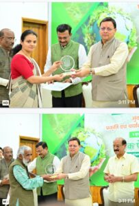 मुख्यमंत्री ने बताया कि बीते एक वर्ष में प्रदेश में लगभग 6,500 से अधिक जल स्रोतों के संरक्षण एवं उपचार का कार्य सफलतापूर्वक किया गया है। लगभग 3.12 मिलियन घन मीटर वर्षा जल का संचयन भी किया गया है। चारधाम यात्रा सहित विभिन्न धार्मिक, पर्यटन और अन्य अवसरों पर प्रदेश में आने वाहनों में कूड़ेदान रखना अनिवार्य किया गया है। उन्होंने कहा हाल ही में प्रदेश में आयोजित राष्ट्रीय खेलों को ‘ग्रीन गेम्स’ की थीम पर आयोजित किया गया था। इस आयोजन में सभी मेडल और पुरस्कार ई-वेस्ट सामग्री से बनाए गए और खेल किट भी रीसाइकल्ड सामग्री से तैयार किए गए। वन मंत्री सुबोध उनियाल ने कहा कि उत्तराखंड पर्यावरण के प्रति संवेदनशील है। जिसके फलस्वरुप आज देश में कार्बन को अवशोषित करने वाले सर्वश्रेष्ठ पांच राज्यों में उत्तराखंड का नाम है। उन्होंने कहा पर्यावरण संरक्षण के लिए हमने जन सहभागिता को प्राथमिकता दी है। उन्होंने कहा उत्तराखंड आने वाले यात्रियों को पर्यावरण के प्रति जागरूक किया जा रहा है। आज राज्य में प्लास्टिक के विकल्प पर भी कार्य किया जा रहा है। प्लास्टिक के न्यूनतम इस्तेमाल हो, इसका हमें विशेष ध्यान रखना होगा। मुख्य सचिव आनंद बर्द्धन ने कहा कि विकास के साथ पर्यावरण संरक्षण भी महत्वपूर्ण है, जिसके लिए ग्रॉस एनवायरमेंट प्रोडक्ट का कांसेप्ट लाया गया है। मुख्यमंत्री के निर्देशों पर राज्य स्तर पर पर्यावरण पुरस्कार देने की शुरुवात की गई है। उन्होंने कहा पर्यावरण और जल संरक्षण का कार्य हर किसी की सामूहिक जिम्मेदारी है। इस अवसर पर प्रमुख वन संरक्षक डॉ. धनंजय मोहन, शासन, पुलिस और वन विभाग के वरिष्ठ अधिकारी उपस्थित थे।