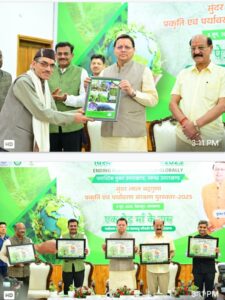 देहरादून। मुख्यमंत्री पुष्कर सिंह धामी ने मुख्यमंत्री आवास स्थित मुख्य सेवक सदन में विश्व पर्यावरण दिवस के अवसर पर पर्यावरण के क्षेत्र में सर्वश्रेष्ठ कार्य करने वाले लोगों को सम्मानित किया। सुन्दर लाल बहुगुणा प्रकृति एवं पर्यावरण संरक्षण पुरस्कार-2025 (सरकारी श्रेणी) में नगर निगम रूद्रपुर को सम्मानित किया गया। नगर निगम रूद्रपुर से उप नगर आयुक्त श्रीमती शिप्रा जोशी ने यह पुस्कार प्राप्त किया। सुन्दर लाल बहुगुणा प्रकृति एवं पर्यावरण संरक्षण पुरस्कार-2025 ( गैर सरकारी श्रेणी) में विजय जड़धारी एवं प्रताप सिंह पोखरियाल को सम्मानित किया गया।