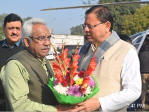 उन्होंने कहा कि दिव्य एवं भव्य कुंभ आयोजन के लिए संत समाज द्वारा राज्य सरकार को पूर्ण सहयोग दिया जाएगा। इस अवसर पर अखाड़ा परिषद के महामंत्री महंत राजेंद्र दास, दिगंबर अखाड़े के वैष्णो दास, निर्वाणी अखाड़े के श्रीमहंत मुरली दास, निर्मल अखाड़े के कोठारी जसविंदर सिंह, बड़ा उदासीन अखाड़े के राघवेंद्र दास, नया अखाड़े से जगतार मुनि, अटल अखाड़े के सत्य गिरी, मनोज गिरी सहित साधु संत मौजूद रहे। हेलीपैड दयानन्द स्टेडियम गुरुकुल कांगड़ी पहुंचने पर जिलाधिकारी मयूर दीक्षित एवं वरिष्ठ पुलिस अधीक्षक प्रमेंद्र सिंह डोभाल ने श्री भगवत गीता भेंटकर स्वागत किया एवं भाजपा पदाधिकारियों एवं कार्यकर्ताओं द्वारा पुष्प मालाओं के साथ स्वागत किया।