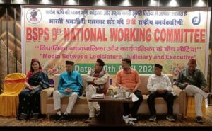 कार्यक्रम की अध्यक्षता करते हुए भारती श्रमजीवी पत्रकार संघ के राष्ट्रीय अध्यक्ष अशोक पांडेय ने पत्रकारों से अपनी सार्थक और निष्पक्ष भूमिका निभाने का आग्रह किया। उन्होंने कहा कि यदि लोकतंत्र के चारों स्तंभों में समन्वय बनाना है तो मीडिया को अपनी आंखें और कान खुले रखने होंगे और न्यायपालिका, कार्यपालिका तथा विधायिका पर नजर बनाए रखनी होगी। उन्होंने यह भी कहा कि पत्रकारों को पक्षकार नहीं बल्कि समाज का आईना बनना चाहिए।संघ के राष्ट्रीय महासचिव डॉ. नवीन आनंद जोशी ने अपने संबोधन में कहा कि शासन के दस्तावेजों, इमारतों और मुद्रा पर जो तीन शेर दिखाई देते हैं, उनमें चौथा अदृश्य शेर मीडिया है, जो खबरों के माध्यम से लोकतंत्र के बाकी तीनों स्तंभों पर निगरानी रखता है। उन्होंने मीडिया को “खबरदार पालिका” करार दिया, जो समाज को जागरूक रखने में अहम भूमिका निभाती है।