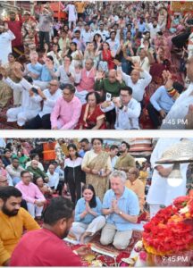 हरिद्वार। अंतर्राष्ट्रीय योग दिवस के अवसर पर मेक्सिको, फिजी,नेपाल, सूरीनाम, मंगोलिया, लातविया, श्रीलंका और रूस के राजनयिक व अन्य उच्च अधिकारियों के साथ ही उत्तराखंड सरकार की ओर से उपाध्यक्ष उत्तराखंड राज्य आपदा प्रबंधन विनय रुहेला सहित अन्य अधिकारियों ने हरकी पौड़ी पहुंचकर गंगा आरती में प्रतिभाग किया तथा मां गंगा की आरती की।
