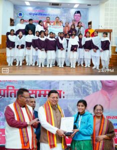 उन्होंने संस्कृत छात्र प्रतिभा सम्मान में 2024- 25 हेतु 10 वीं और 12 वीं के कुल 24 मेधावी छात्र-छात्राओं को सम्मानित किया। इसमें प्रथम, द्वितीय और तृतीय स्थान प्राप्त करने वालों को क्रमशः रु 5100, रु 4100 और रु 3100 रुपए की धनराशि दी गई।डॉ भीमराव अंबेडकर अनुसूचित जाति- जनजाति संस्कृत छात्रवृत्ति योजना 2024 – 25 हेतु कुल 148 छात्र-छात्राओं को सम्मानित किया।इसी प्रकार से मुख्यमंत्री ने गार्गी संस्कृत बालिका छात्रवृत्ति योजना 2024- 25 के अंतर्गत कुल 89 छात्राओं को सम्मानित किया।इस अवसर पर मुख्यमंत्री ने संस्कृत शिक्षा के छात्र-छात्राओं को प्रेरित करते हुए कहा कि उत्तराखंड सरकार संस्कृत के संरक्षण और संवर्धन के लिए निरंतर प्रयत्नशील है। कहा कि उत्तराखंड संस्कृत अकादमी के माध्यम से संस्कृत विद्यालयों में अध्यनरत बालिकाओं के प्रोत्साहन हेतु प्रथम बार *गार्गी संस्कृत बालिका छात्रवृत्ति योजना* का शुभारंभ किया गया है। जिसके अंतर्गत संस्कृत विद्यालय में अध्यनरत सभी वर्गों की बालिकाओं को 3012 रुपए वार्षिक छात्रवृत्ति प्रदान की जा रही है।