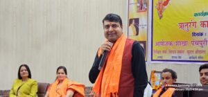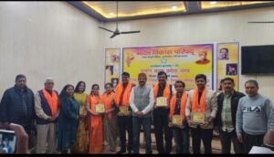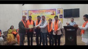 अमित कुमार।                                                    हरिद्वार। भारत विकास परिषद की पंचपुरी शाखा के तत्वाधान में ऋतुरंग काव्य प्रणेता संगम के सुअवसर पर बीती शाम एस एम जे एन (पी जी) कालेज के सभागार में श्रृंगार रस और वीर रस से ओतप्रोत काव्य संगोष्ठी का भव्य आयोजन किया गया। काव्य संगोष्ठी की शुरुआत सांसद प्रतिनिधि विमल कुमार, डॉ रवि कांत शर्मा और मुख्य अतिथियों द्वारा दीप प्रज्वलित कर की गई। प्रसिद्ध गीतकार भूदत्त शर्मा ने श्रृंगार रस पर काव्य पाठ से करते हुए कहा कि मेरे मन में गहरा सागर फिर भी प्यास लिए फिरता हूं, इसकी खुशियां उसके दुखड़े हर अहसास लिए फिरता हूं, ना कोई रूठे ना कोई छुटे मुझ से किसी का दिल ना टूटे, संबंधों को पुष्पित करने मैं मधुमास लिए फिरता हूं। कवि अमन शुक्ला ‘ शशांक ‘ ने वीर रस पर काव्य पाठ कर सभी में जोश भर दिया। उन्होंने कहा कि देश पर जो मर मिटे, वही जवानी होनी चाहिए। कवि ‘अंबर’ खरबंदा ने परिवार वाद पर कटाक्ष करते हुए कहा कि अपने दिल की कभी न कहता हूं, उनकी हर एक बात सहता हूं, बेटे रहते थे मेरे घर में कभी, अब मैं बेटों के घर में रहता हूं। दिव्यांश कुमार ‘ दुष्यन्त ‘ ने कहा कि एक जमाना आएगा कलम चलेगी रास्ते पर और लेखक कैद हो जाएगा। महिला कवि नेत्री राजकुमारी ‘राजेश्वरी ‘ ने नारी का सजीव चित्रण करते हुए कहा कि दुनिया वालों कद्र करो कुछ औरत के उद्गार की। यही भारती है जग- जीवन में रंगत अपने प्यार की। इसके अथक प्रयासों से ही सजती है गृह वाटिका। बिन नारी तस्वीर अधूरी रह जाती संसार की।। कवयित्री महिमा श्री ने श्रृंगार रस पर काव्य पाठ तो किया ही उन्होंने पतियों की भी जमकर क्लास लगा कर सभी को लोटपोट कर दिया। सबसे अंत में श्रीकांत श्री ने वीर रस और भक्ति रस के साथ ही पन्ना धाय पर काव्य पाठ कर सभी में देश भक्ति का जोश भर दिया।  मुख्य अतिथि महंत अनिल गिरी, विशिष्ट अतिथि विशाल गर्ग , विमल कुमार और डॉ रविकांत शर्मा व राज्य महिला आयोग की सदस्य कमला जोशी ने भी अपने विचार रखे और सुन्दर काव्य संगोष्ठी का आयोजन करने के लिए भारत विकास परिषद की पंचपुरी शाखा को साधुवाद दिया। शाखा अध्यक्ष निखिल वर्मा ने अपनी शाखा के कार्यक्रमों पर प्रकाश डालते हुए कहा कि इस साल का 65वां आयोजन है।जिला समन्वयक श्री कुशल पाल सिंह चौहान और जिला सह समन्वयक अमित कुमार गुप्ता और पंचपुरी शाखा के अध्यक्ष निखिल वर्मा और महिला सहभागिता श्रीमती आभा वर्मा ने सभी कवियों और अतिथियों का पटका पहना कर और स्मृति चिह्न देखकर सम्मानित किया। इस अवसर पर भेल शाखा, शिवालिक शाखा,संस्कार शाखा, देवभूमि और अलकनंदा शाखा के दायित्व धारी भी उपस्थित रहे।