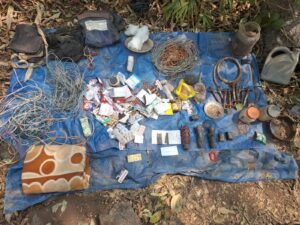सर्च ऑपरेशन के दौरान मौके से बड़ी मात्रा में विस्फोटक और दैनिक उपयोग की सामग्री बरामद की गई। इनमें 2.5 किलोग्राम का IED, तीन पाइप बम, पांच जिंदा कारतूस, बैटरी, इलेक्ट्रिक वायर, गैस लाइटर, नक्सली वर्दी की पैंट, दवाइयां, कंबल, सर्फ पाउडर सहित अन्य सामान शामिल है।