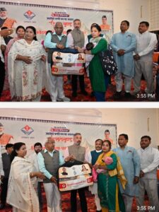 जिसमें सहकारिता विभाग द्वारा पंडित दीनदयाल उपाध्याय सहकारी किसान योजना के अन्तर्गत 50 लाभार्थियों को 5613000 धनराशि के चेक वितरित किए गए।लघु उद्योग में हथकरघा एवं हस्तशिल्प में जिला स्तर पर पुरस्कार प्राप्त करने वाले प्रथम एवं द्वितीय स्थान प्राप्त करने वाले 14 लोगो को प्रशस्ति पत्र देकर सम्मानित किया गया तथा बाल विकास विभाग द्वारा 40 महिलाओं को महालक्ष्मी किट वितरित किए गए तथा समाज कल्याण विभाग द्वारा 09 दिव्यांगजनो को बैसाखी, झड़ी और व्हील चेयर वितरित किए गए।