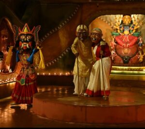 कोलकाता। पश्चिम बंगाल के दक्षिण दिनाजपुर जिले का प्रसिद्ध मुखौटे भारत में कई पारंपरिक और लोक नृत्य शैलियों का एक अभिन्न अंग हैं। यह नृत्य आमतौर पर पौराणिक कथाओं और लोककथाओं का वर्णन करता है। मुखा, मुखो का बोलचाल का शब्द है जिसका अर्थ है मुखौटे। इस एतिहासिक मूखौटे को खिदिरपुर पल्ली शारदीया क्लब ने दुर्गा पूजा पंडाल को मुखा(मुखौटे) आकृति का रुप दिया है। क्लब द्वारा पिछले 84 वर्षों से विभिन्न विभिन्न प्रकार के थीम पर पूजा पंडाल का रुप देते आ रहा है। इस बार दर्शनार्थियों को आकर्षित करने के खिदिरपुर पल्ली शारदीया क्लब ने देश के प्रसिद्ध मुखा (मुखौटे) के आकृति का पंडाल के रुप रेखा तैयार दिया गया है। इस पंडाल का उद्घाटन  समाजसेवी और पूजा कमेटी के चेयरमैन की एन सिंह,पार्षद सतेंद्र सिंह, पार्षद शष्ठी दसा, पार्षद शमिमा रेहान खान,
