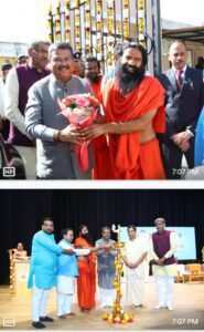 उन्होंने योग और आयुर्वेद को दुनिया की आवश्यकता बताते हुए स्वामी रामदेव और आचार्य बालकृष्ण को भारत की इस महान परंपरा को पुनर्जीवित करने का श्रेय दिया। उन्होंने कहा कि जब योग केवल बुजुर्गों और साधु-संतों की बात मानी जाती थी, तब योगऋषि स्वामी रामदेव ने इसे जनांदोलन का रूप देने का काम किया। आज देश का शायद ही कोई गांव या क़स्बा होगा, जहां योग की पहुंच ना हुआ हो। पतंजलि के अथक परिश्रम का ही परिणाम है कि यूनेस्को ने भी योग को मानवता की अमूर्त सांस्कृतिक विरासत की प्रतिनिधित्व सूचि में औपचारिक रूप से अंकित किया है।