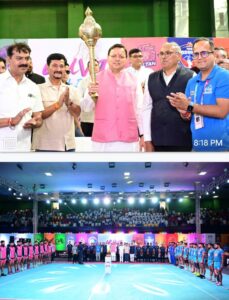 हरिद्वार। मुख्यमंत्री पुष्कर सिंह धामी ने हरिद्वार में उत्तराखंड कबड्डी एसोसिएशन के तत्वाधान में वन्दना कटारिया इंडोर स्टेडियम रोशनाबाद में आयोजित युवा ऑल स्टार्स चौम्पियनशिप-2025 के समापन समारोह में सम्मिलित हुए। मुख्यमंत्री इण्डोर स्टेडियम/हॉल को एसी हॉल बनाने की घोषणा करते हुए राष्ट्रीय स्तर की इस कबड्डी चैंपियनशिप में प्रतिभाग करने हेतु देश के कोने-कोने से पधारे सभी ऊर्जावान खिलाड़ियों, तथा खेल प्रतियोगिता में विजय होकर मेडल प्राप्त करने वाले सभी खिलाड़ियों के उज्जवल भविष्य की कामना की। उन्होंने खिलाड़ियों का मनोबल बढ़ाते हुए कहा कि जिन टीमों के खिलाड़ी जीत से कुछ कदम दूर रह गए हैं, वे इसे अपनी खेल क्षमताओं में सुधार लाने का एक अवसर के रूप में देखें।
